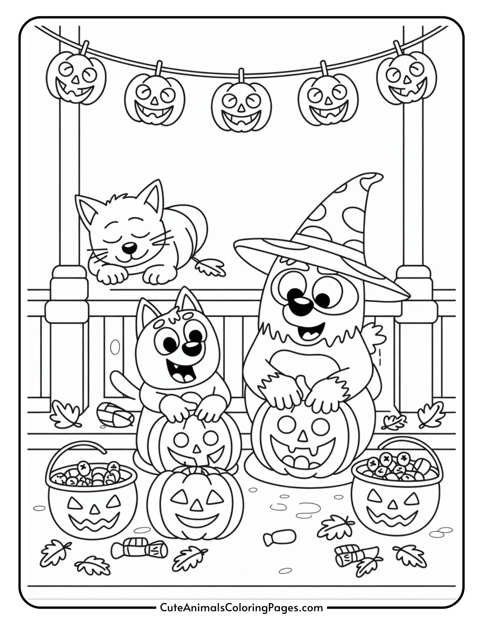 Nothing says halloween like a spooky night scene. These colored blue pages, bingo, and their friends are covered under the moon, which are surrounded by Bostan, Jack-O’-Lantern, and maybe the Spirit or two. My kids go on this with your original nuts and glitter marks. That’s the page that actually feels like Halloween.