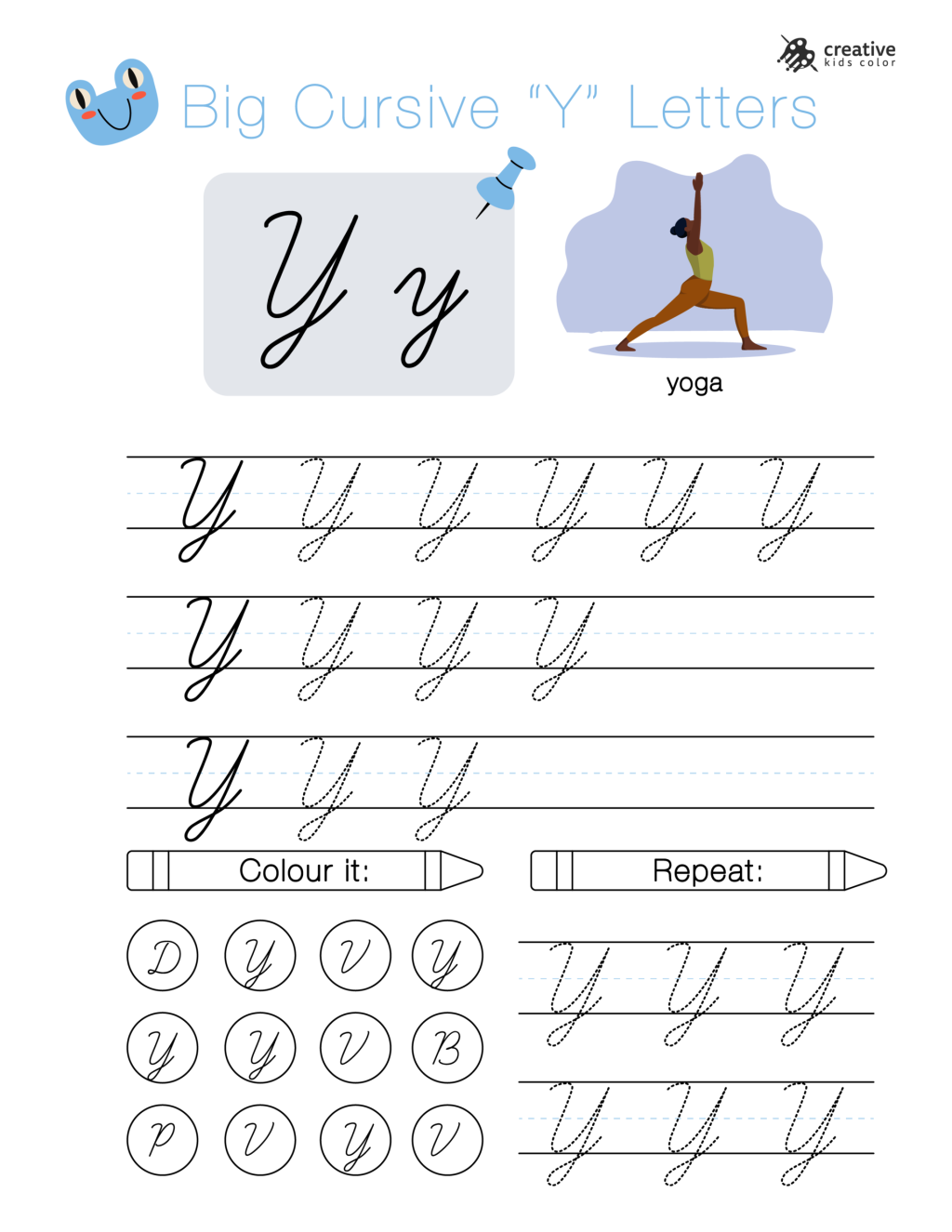 Start Big, Go Smaller: Start with the Uppercase Letters “Y” worksheet to understand structure and movement before moving on to smaller texts.